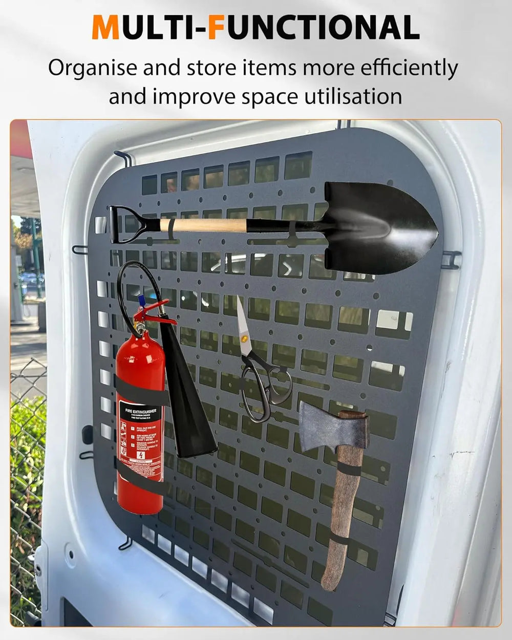 Versatile and Customizable: Thanks to the MOLLE system, you can personalize the security window screen to meet your specific needs. Whether you’re mounting a first-aid kit, fire extinguisher, or any other critical gear, the panel adapts to your lifestyle, providing tailored security and functionality.