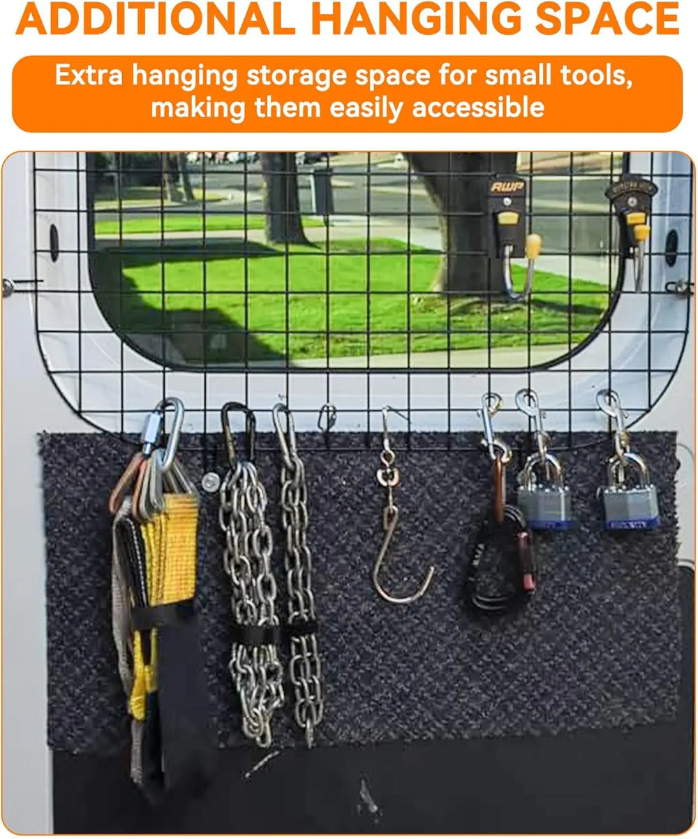 Mesh design of van security screens provide additional hanging storage space for small tools, such as tool kits, cables, etc, making them easily accessible.