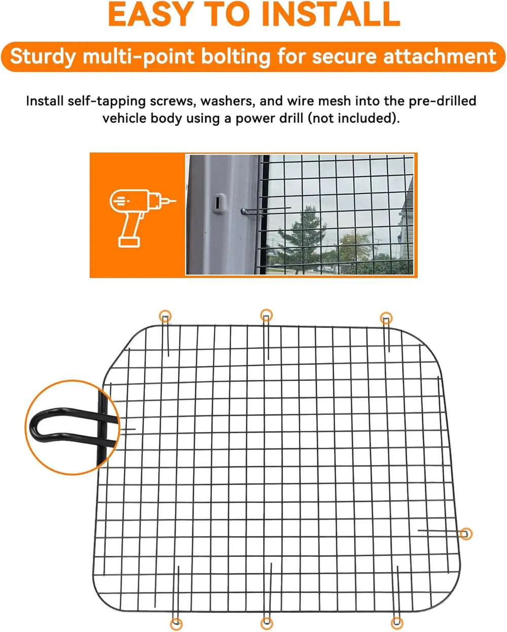 Easy Installation: These van window security screens come with multiple fixing points for secure attachment, ensuring they won’t interfere with the operation of the door lock. Simply pre-drill holes in the vehicle body and install using the provided accessories.