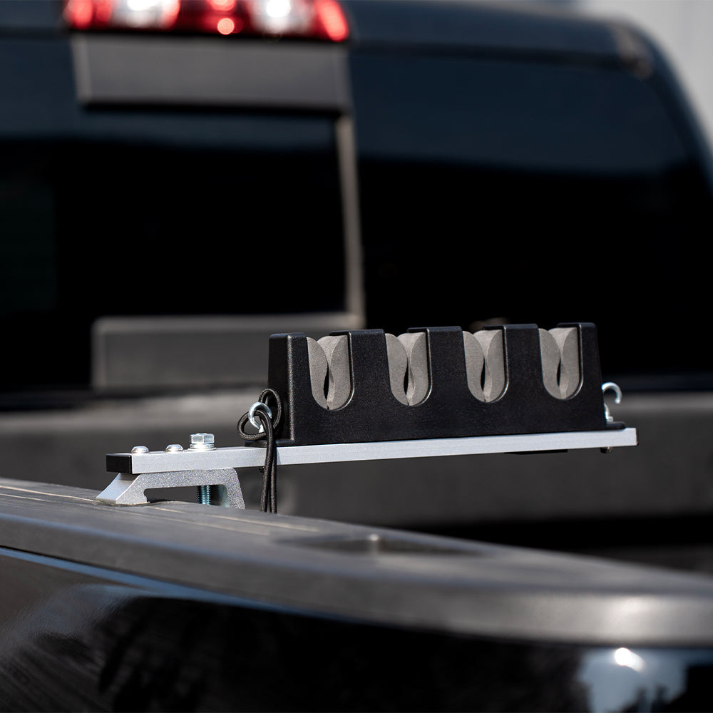 • High Performance: The Truck Bed Rod Holder holds 4 rods/reels and the bungee cords keep the rods safe and secure.
