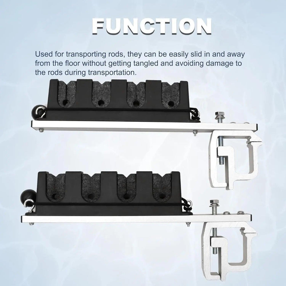 • Function: The Fishing Pole Rack for Truck is used for transporting rods, easily sliding them in and away from the floor without getting all tangled up and having to worry about damaging anything while transporting them anywhere.