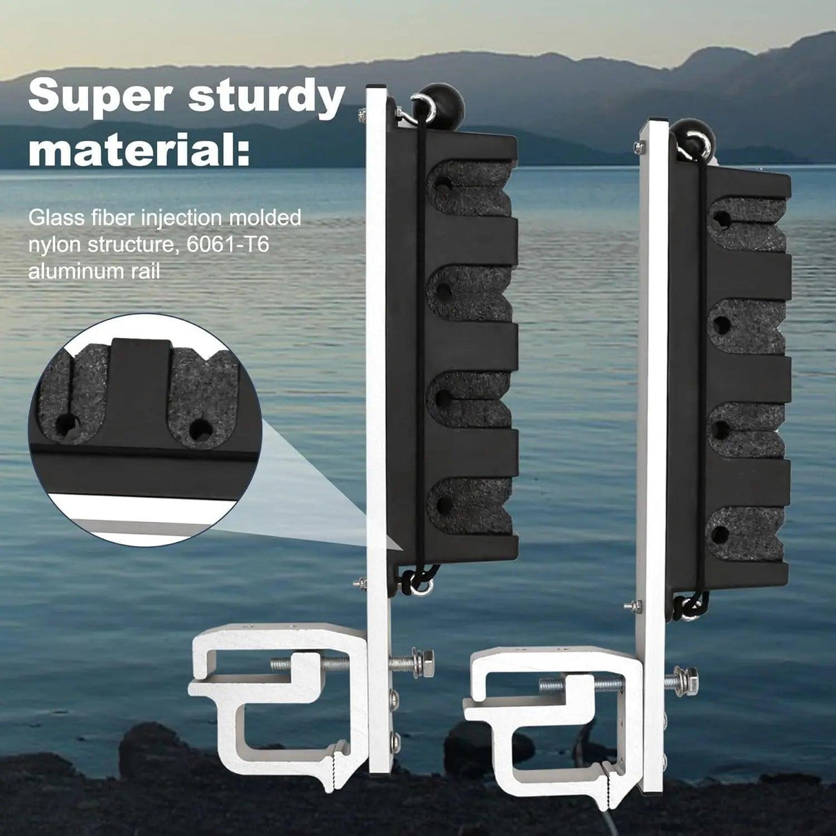 • Material: The Rod Holder for Truck or Boat is a glass fiber injection molding nylon structure, aluminium rail, sturdy and durable anti-rust, giving you a pleasant shopping experience!