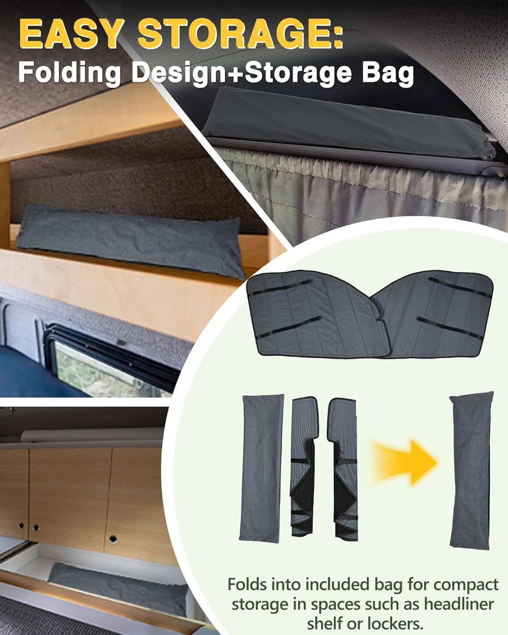 Precisely contoured for Sprinter VS30 2019–2025 door windows. Foldable design and included storage pouch let you pack them away quickly and neatly when not in use.