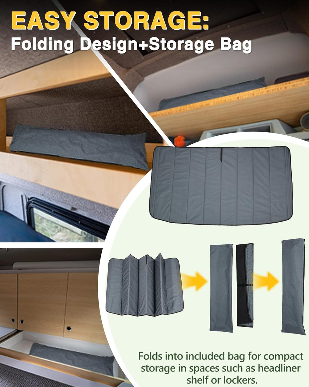 - Tight Fit & Compact Storage: Van window covers fit for RAM Promaster 1500 2500 3500 2014-2024 front windshield, van window shade contour precisely to your van, foldable design, with storage pouch - stow it away in seconds when you're done with it