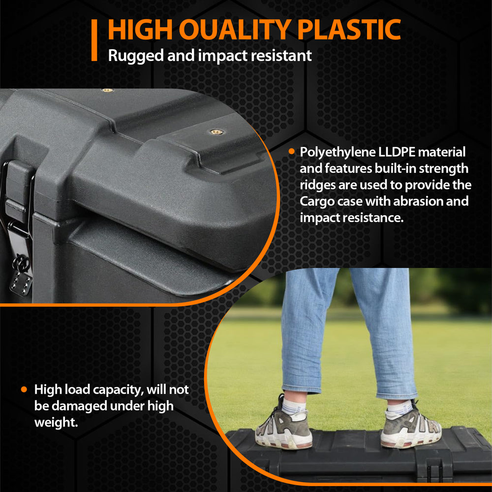Durable Construction: The Cargo Case is expertly crafted with advanced rotational molding technology, ensuring it can withstand the toughest outdoor conditions while effectively protecting your belongings from damage.