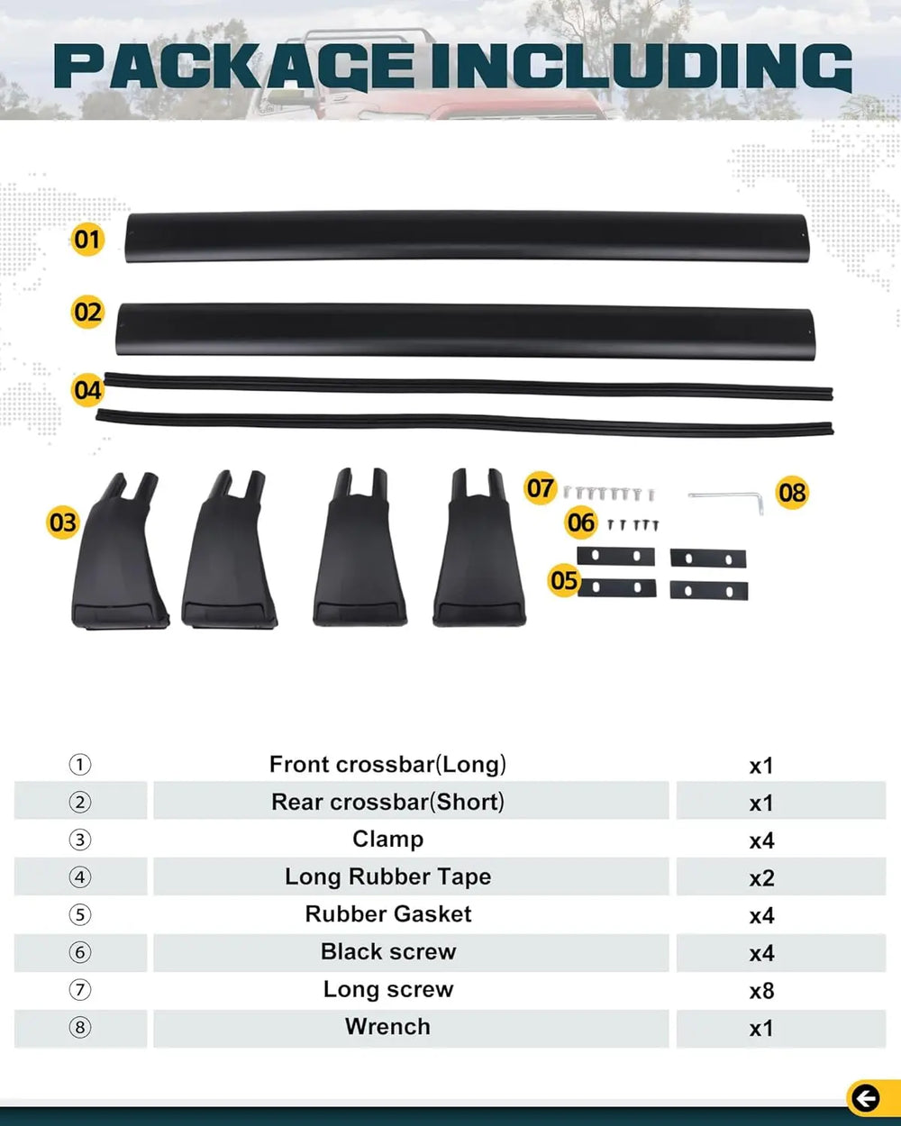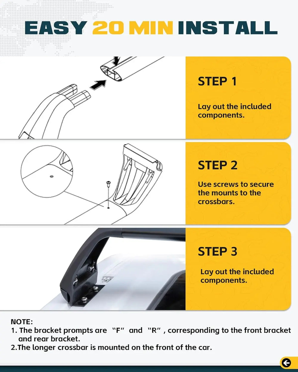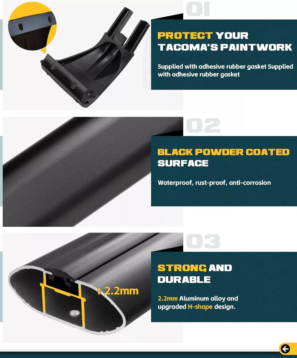 EASY 20 MIN INSTALLATION: Installation is straightforward with all necessary hardware included. The pre-drilled holes align perfectly with your Tacoma, allowing for a no-drilling setup. Sold as a pair, including front and rear crossbars, installation instructions, and a video guide.