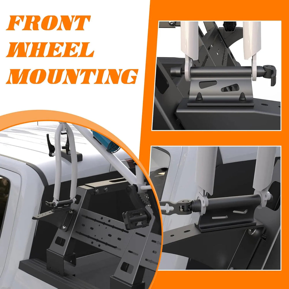- STRONG FUNCTION: Bed rack is designed to securely mount a bike to the side of the full-size and mid-size bed racks in an easy-access location, without occupying much space of your truck bed.