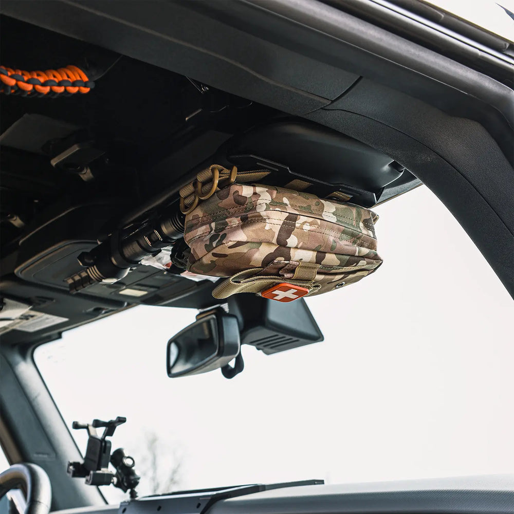 Maximize your in-car space with the Melipron Sun Visor MOLLE Panel, designed to securely hold tactical gear and essentials, keeping everything organized and within reach for your convenience while on the go.