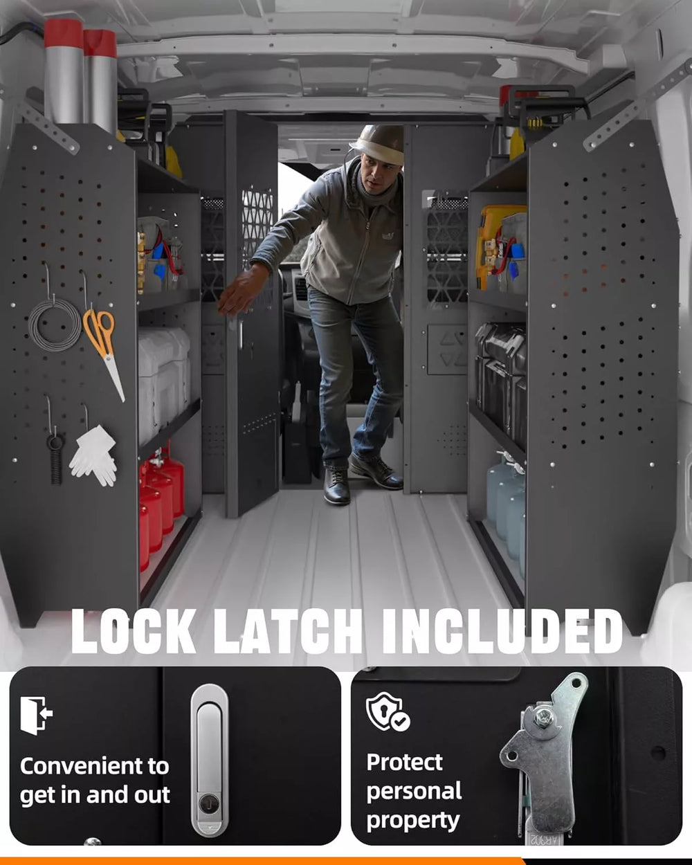 The built-in lock latch secures the cargo area, deterring unauthorized access and theft. Ideal for contractors and delivery professionals transporting tools, packages, or high-value goods.