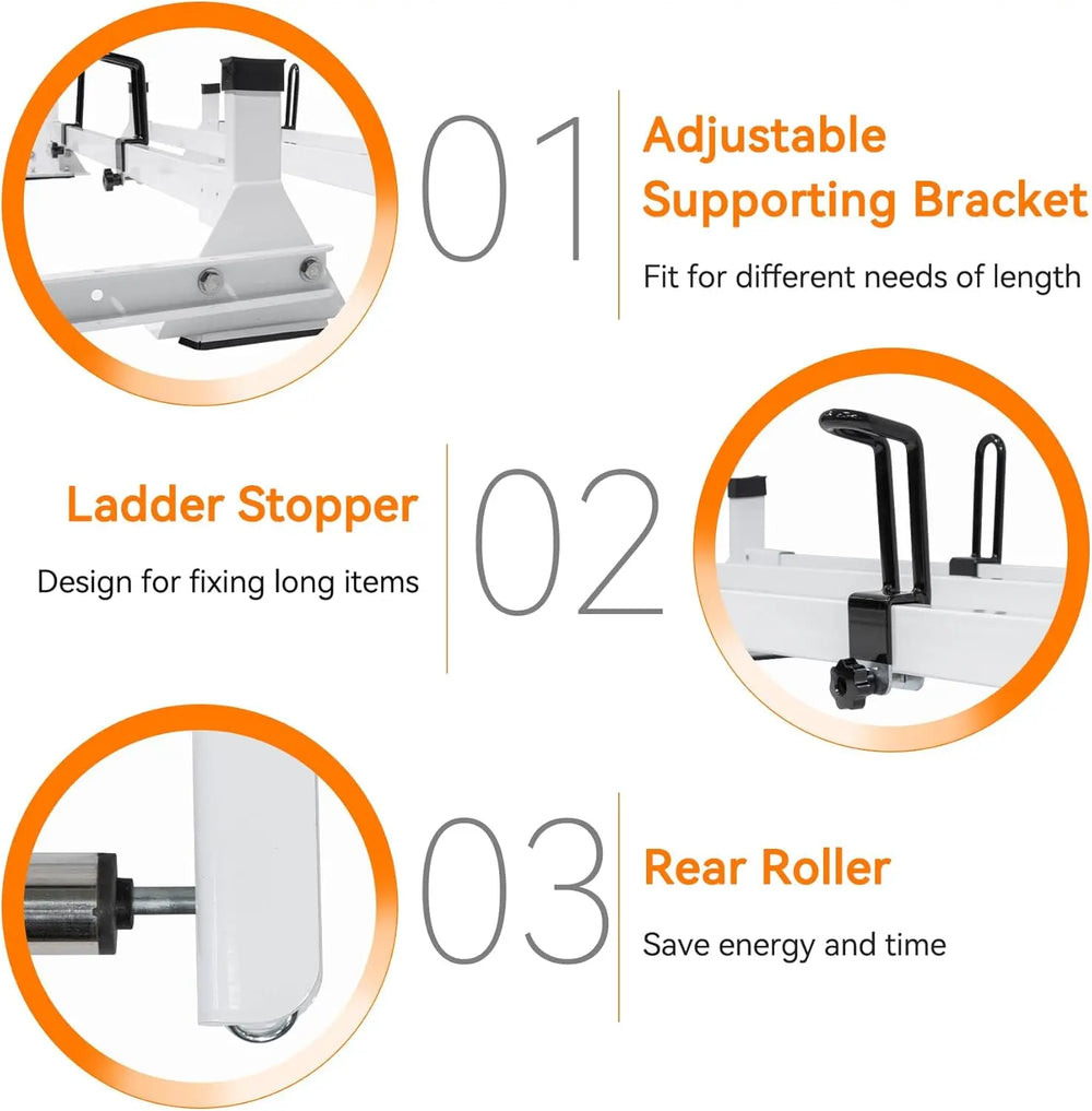 - SPECIAL DESIGN: Ladder guide, stopper, loop straps and velcro straps will help to secure longer material and ladders. Rubber cap on the upright post prevents wind noise at high speed and prevents water from entering the system on rainy days.